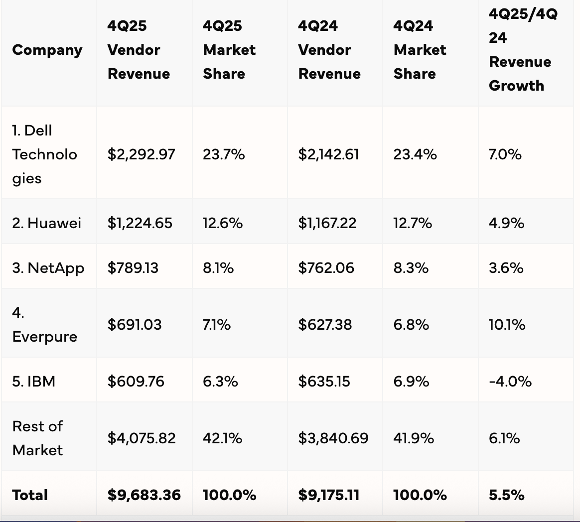 Worldwide External Enterprise Storage Systems Market closed with a solid 3.9% year over year growth in revenue – IDC – April 3, 2026.